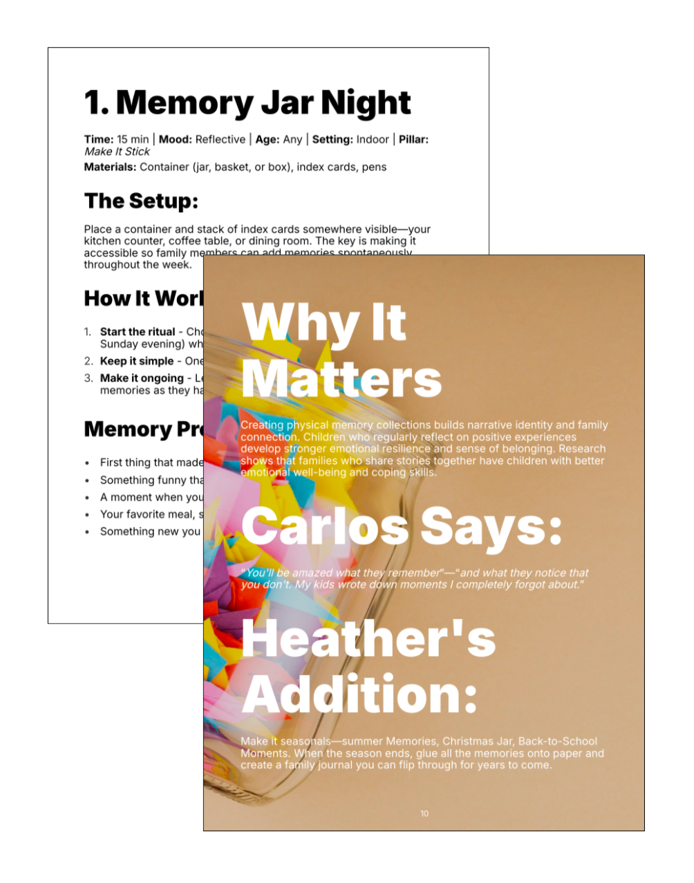 💬 "Carlos Says" & "Heather’s Tips" ($37 Value) — Personal insights to help you make each moment matter